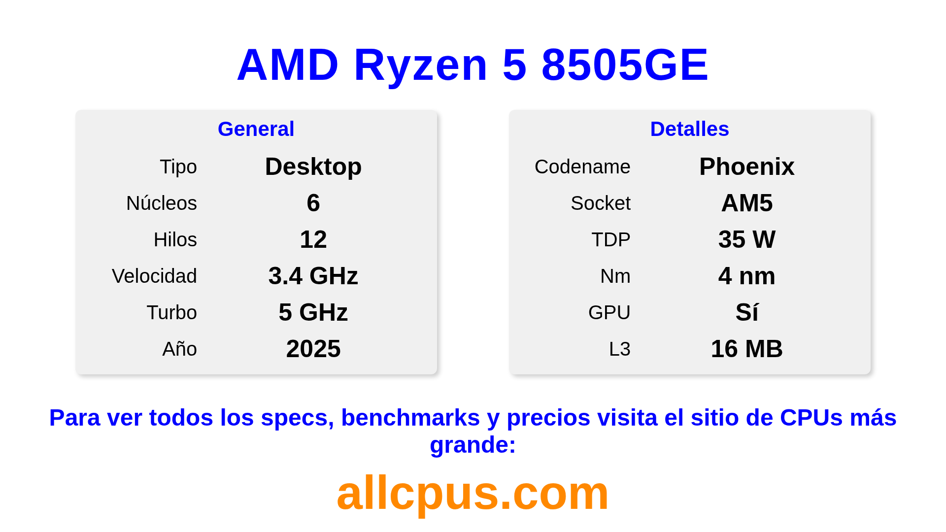 6C / 12T 3.4 / 5 GHz 2025 escritorio iGPU