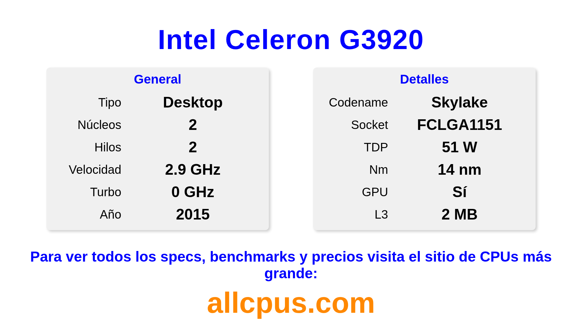 | IDs de producto | Tray CM8066201928609Box BX80662G3920BXC80662G3920 (China) |