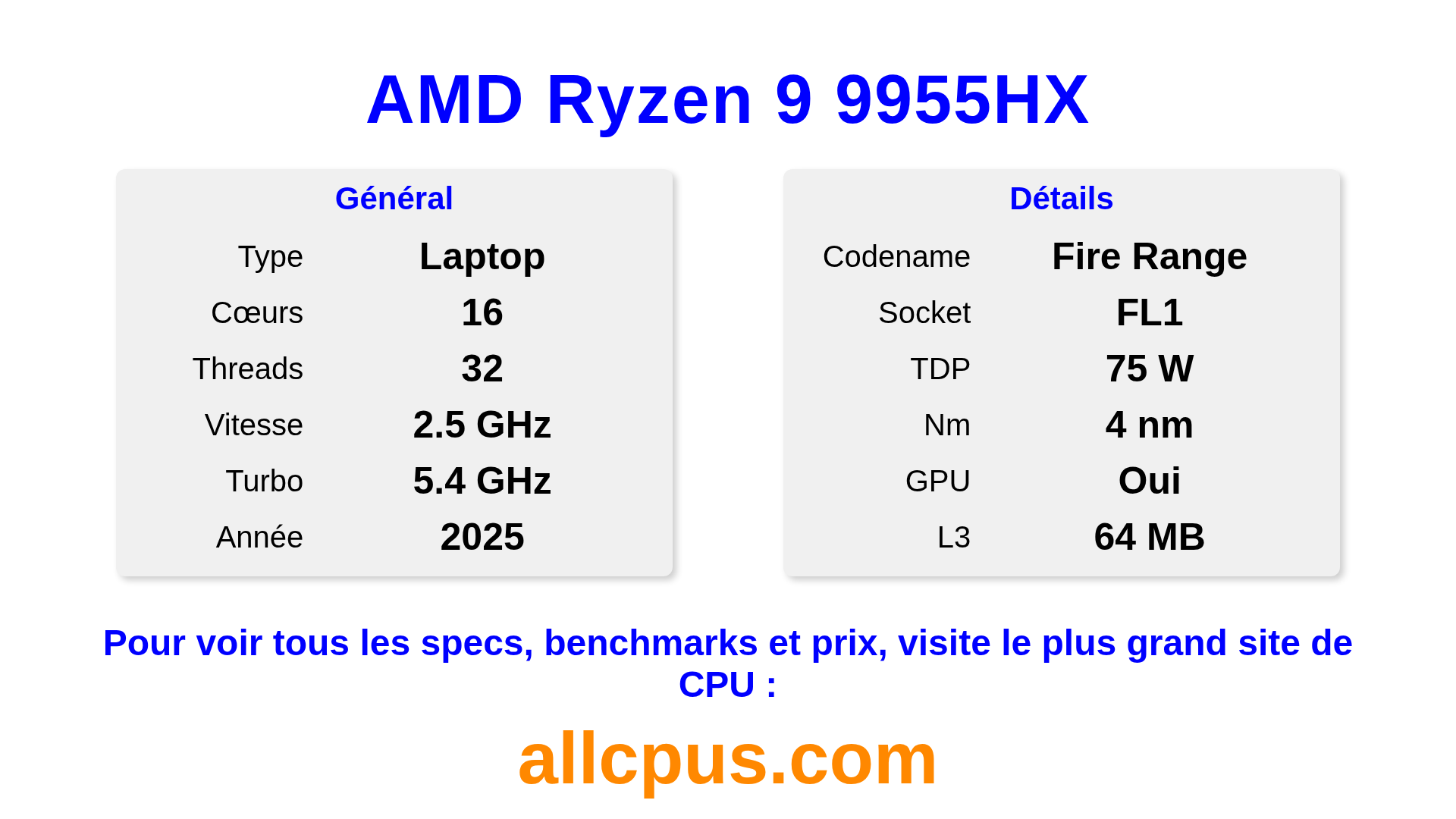 Le AMD Ryzen 9 9955HX est un AMD processeur portable de la gamme Ryzen, basé sur l’architecture Fire Range et sorti en 2025. Ce CPU dispose de 16 cœurs, une fréquence de base de 2500 MHz, fréquence turbo max de 5400 MHz et 64 Mo de cache L3. Fabriqué avec la technologie 4 nm. Le AMD Ryzen 9 9955HX est conçu pour le socket FL1.Il supporte l’overclocking. Il inclut les graphiques intégrés AMD Radeon 610M.