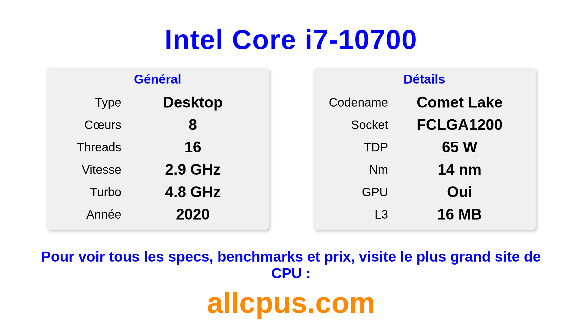 | Nom de code | Comet Lake |