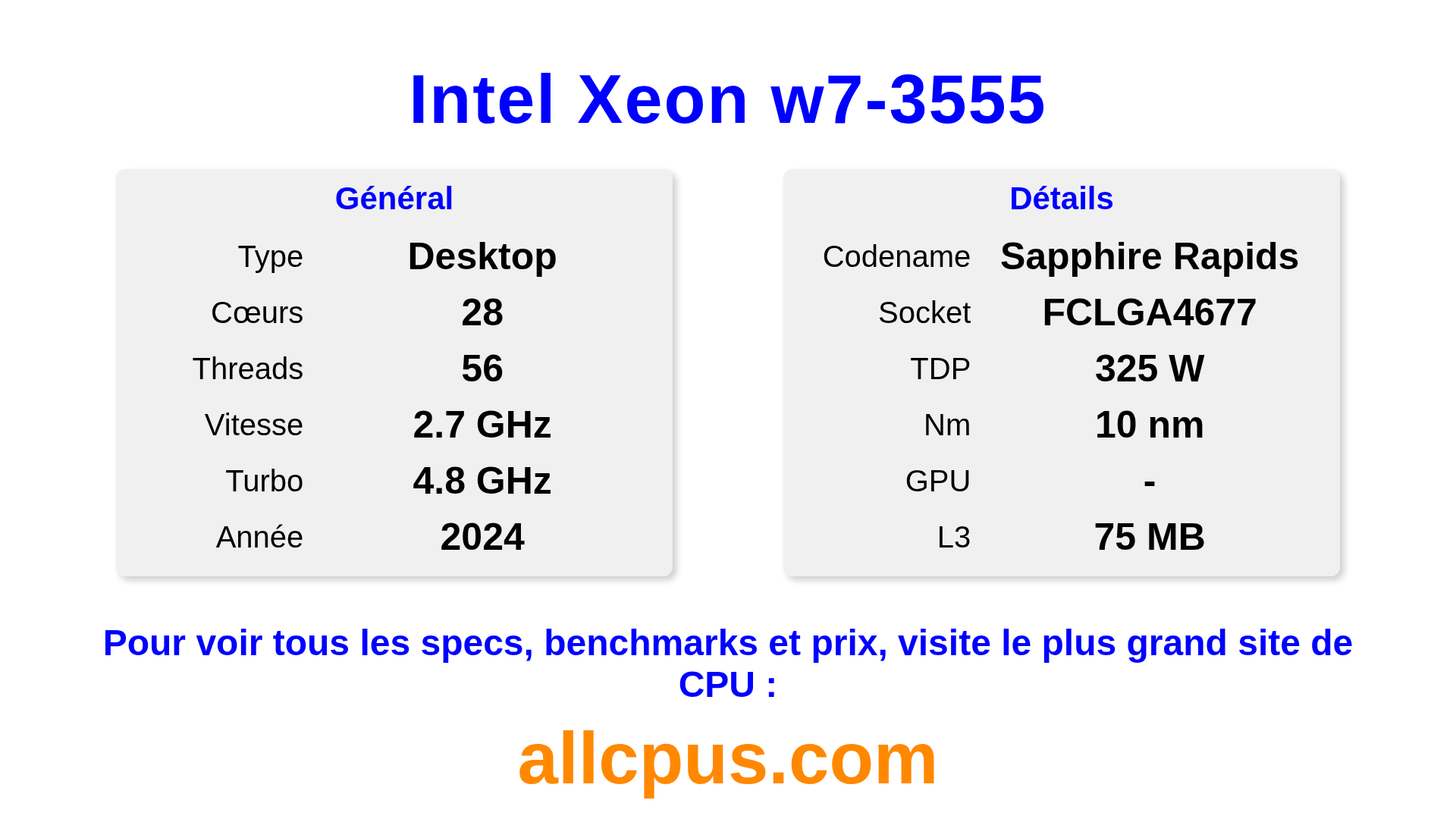 28C / 56T 2.7 / 4.8 GHz 2024 bureau no gpu