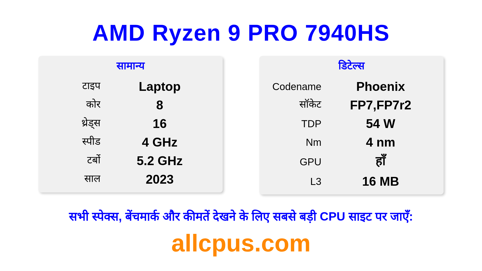 AMD Ryzen 9 PRO 7940HS Ryzen PRO लाइनअप का AMD लैपटॉप प्रोसेसर है, Phoenix आर्किटेक्चर पर आधारित और 2023 में जारी किया गया। इस CPU में 8 कोर, बेस क्लॉक 4000 MHz, अधिकतम टर्बो फ्रीक्वेंसी 5200 MHz और 16 MB L3 कैश है। 4 nm प्रोसेस टेक्नोलॉजी का उपयोग करके निर्मित। AMD Ryzen 9 PRO 7940HS FP7,FP7r2 सॉकेट के लिए डिज़ाइन किया गया है। इसमें इंटीग्रेटेड AMD Radeon 780M ग्राफिक्स शामिल है।