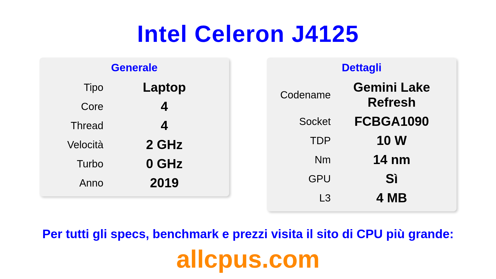 Intel Celeron J4125 is better than 3% cpus with score 12In questo grafico puoi vedere per quali attività questa CPU è adatta. I punteggi sono Blender Benchmark Scores Il punteggio Blender rappresenta le prestazioni multi-core totali del processore sotto carico pesante sostenuto. Rappresenta bene la potenza totale del processore..