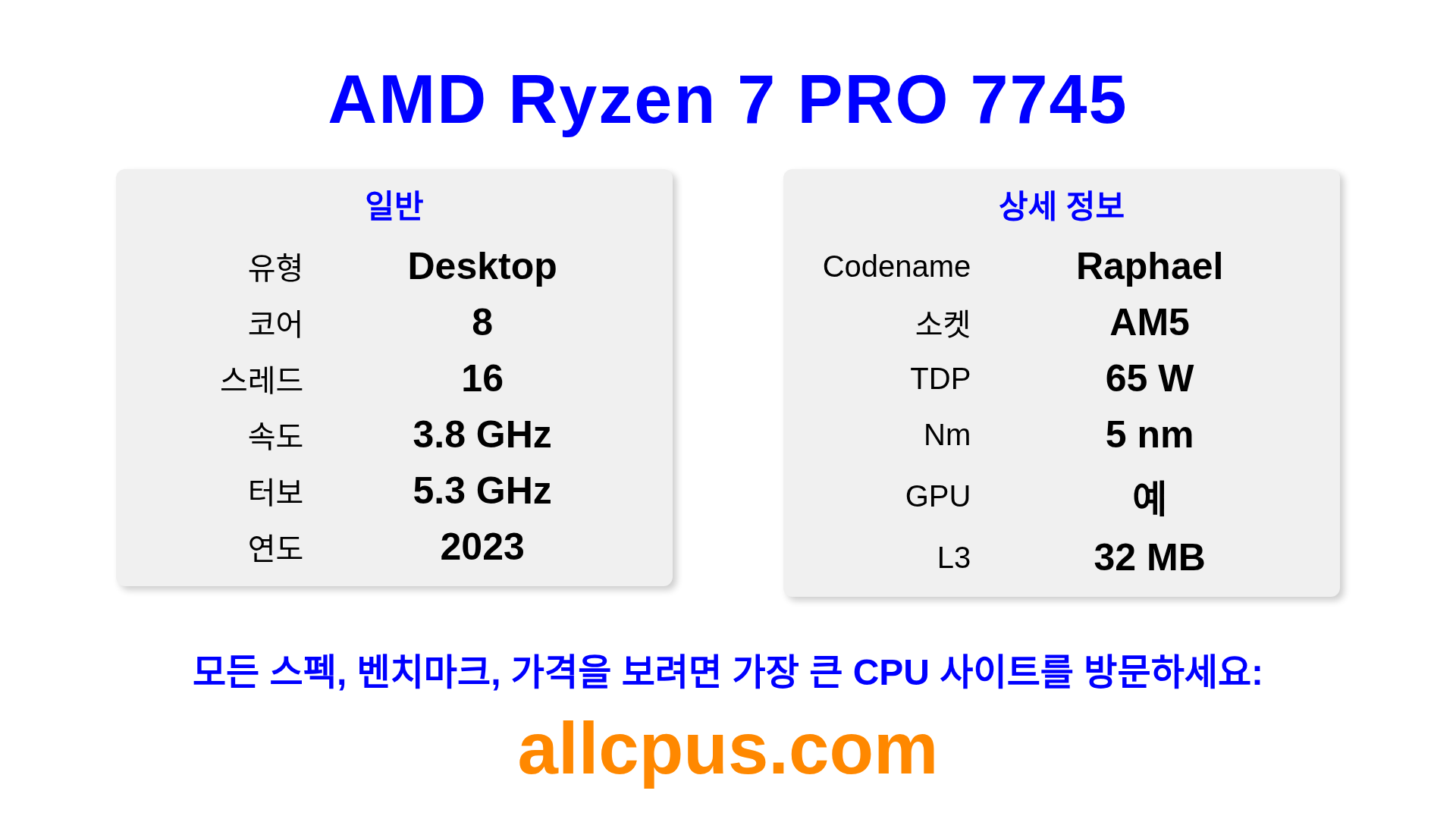 8C / 16T 3.8 / 5.3 GHz 2023 $363 데스크탑 iGPU