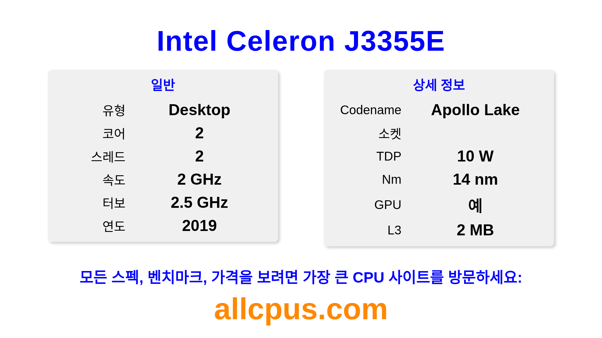 2C / 2T 2 / 2.5 GHz 2019 데스크탑 iGPU
