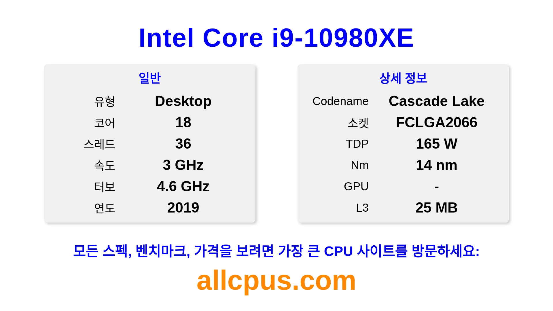 18C / 36T 3 / 4.6 GHz 2019 $1328 데스크탑 no gpu