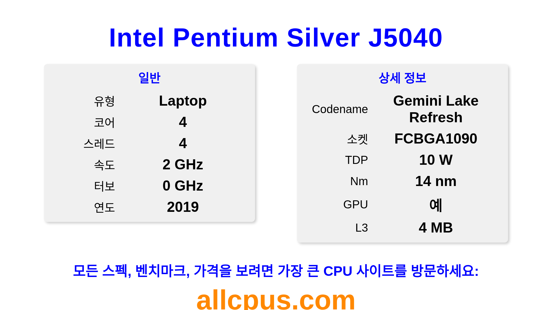 | 클래스 | Intel® Pentium® Silver |
