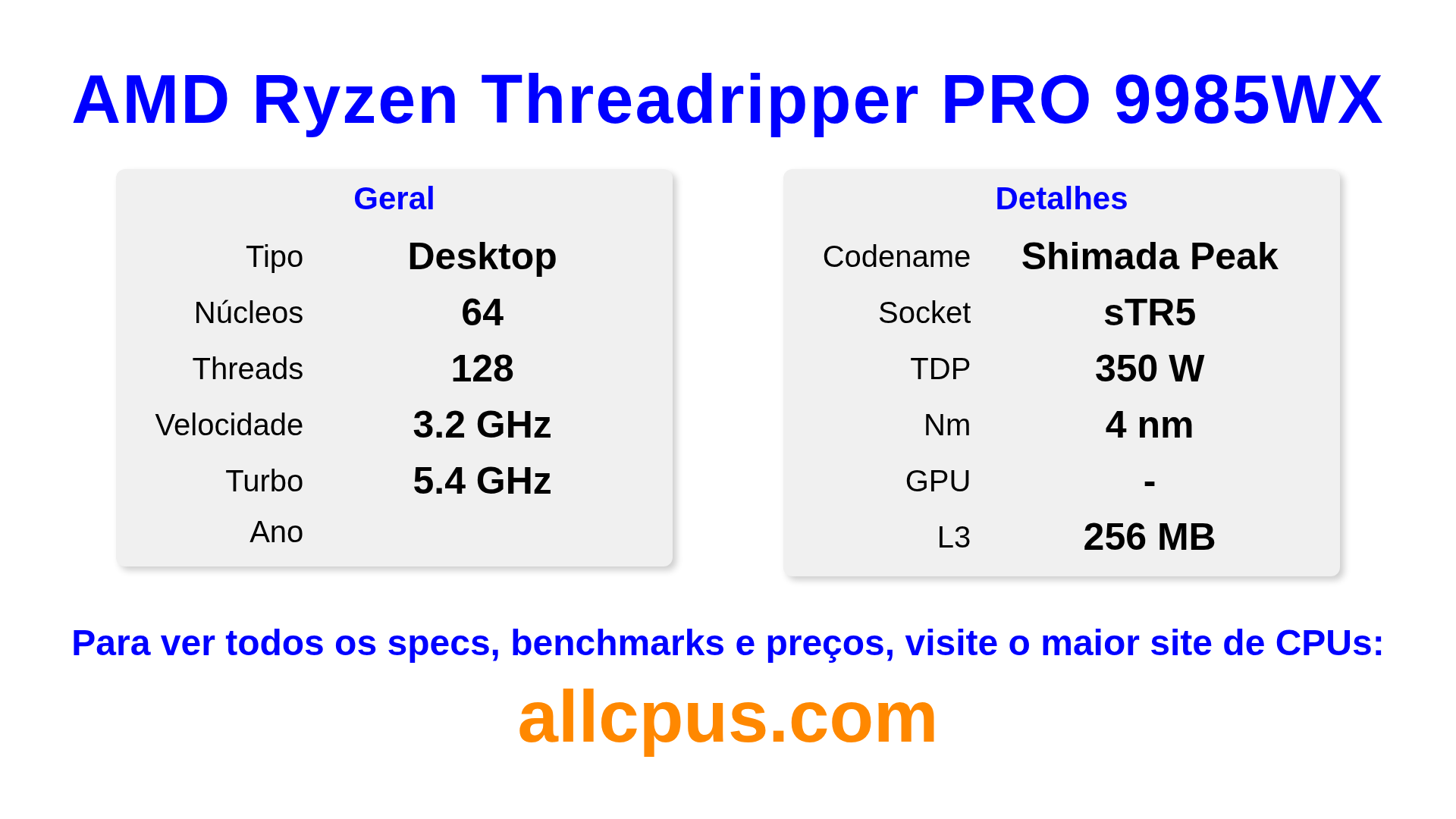 | Núcleos de Desempenho | 64 |