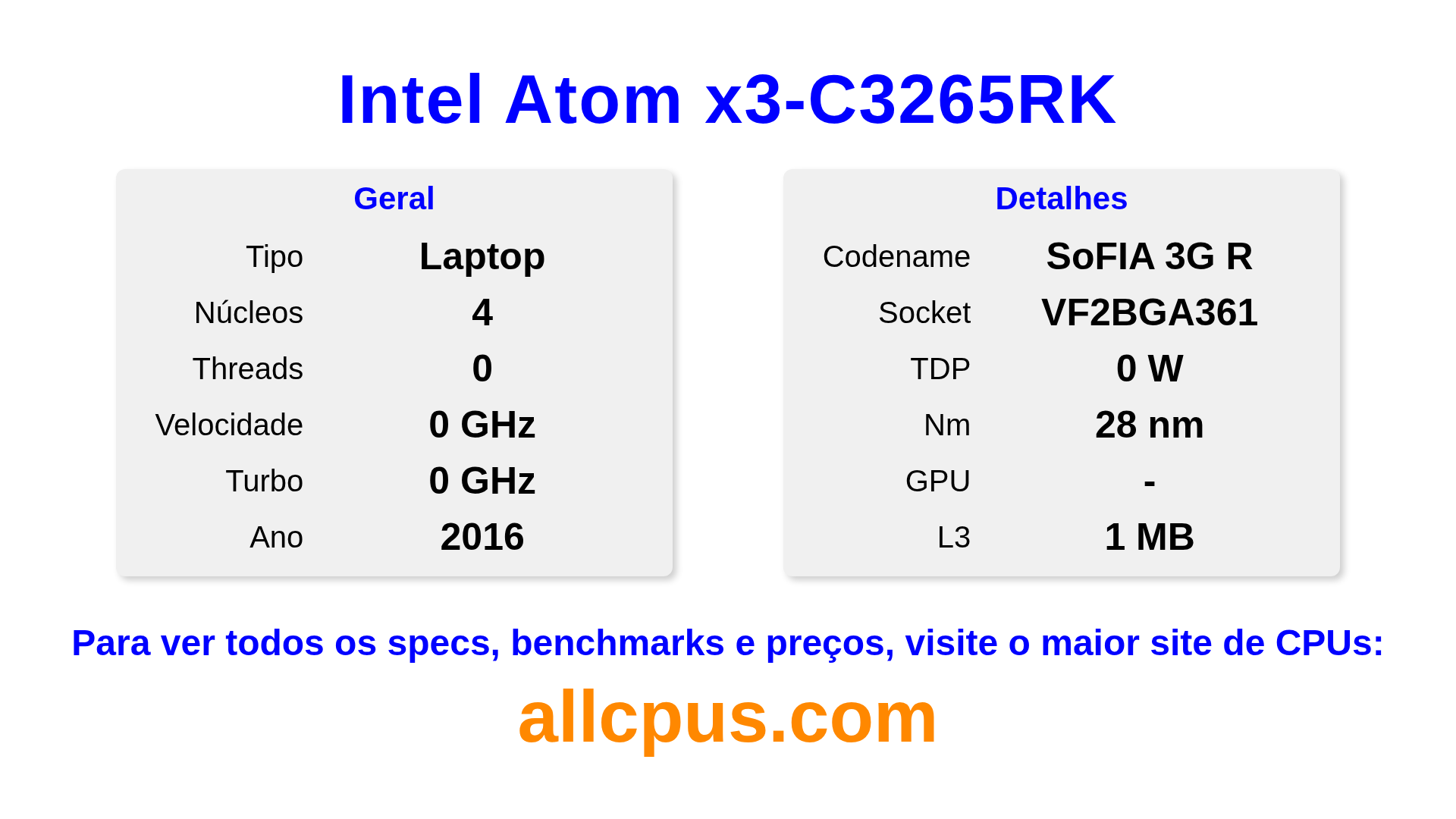 | Velocidade | 0 GHz |