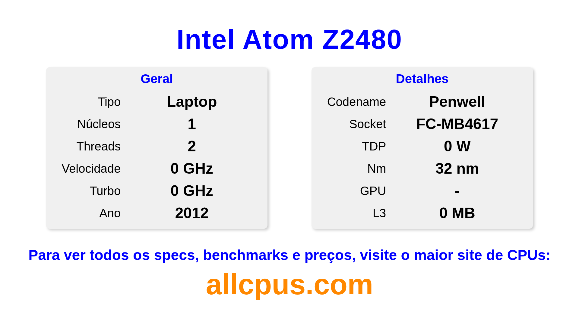 | Velocidade | 0 GHz |