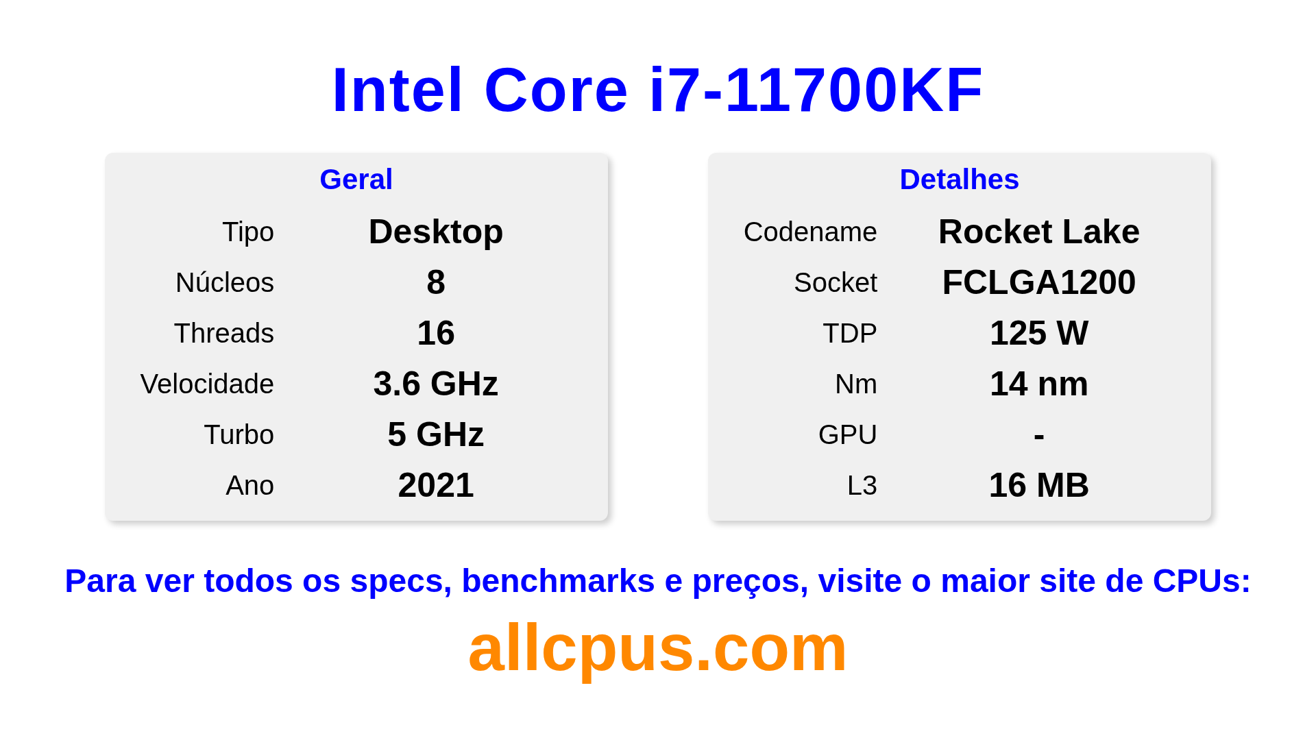 | IDs do produto | Tray CM8070804488630Box BX8070811700KFBXC8070811700KF (China) |