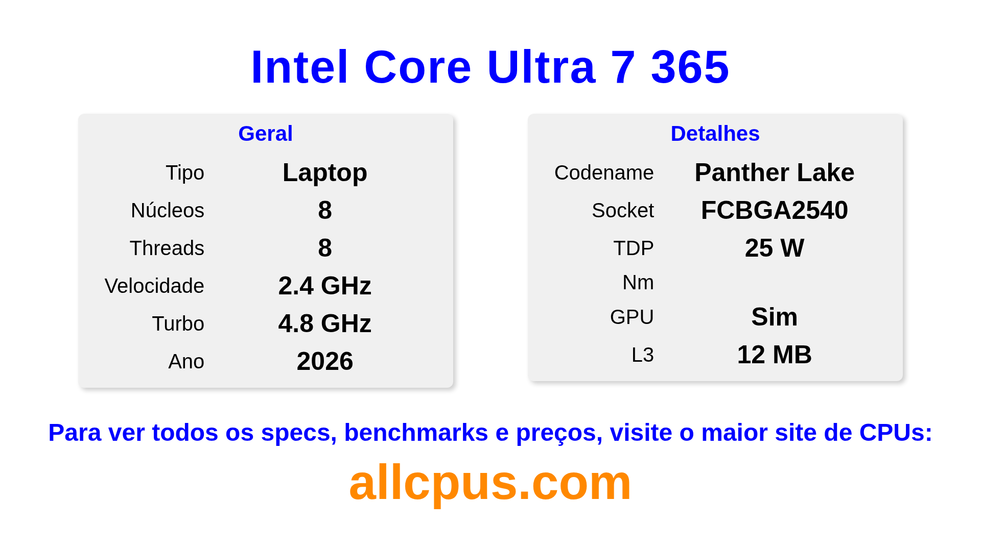 | Nome de Código | Panther Lake |