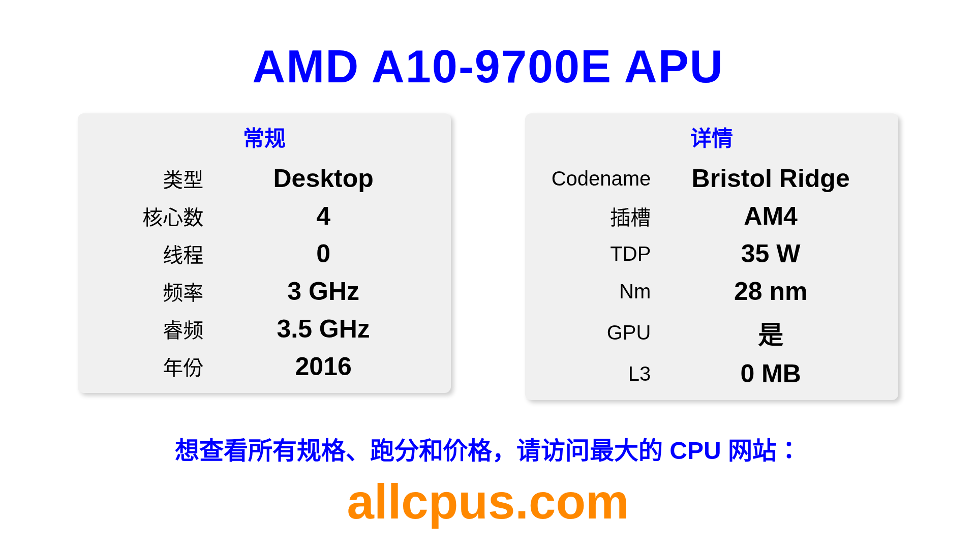 4C / 0T 3 / 3.5 GHz 2016 桌面 iGPU