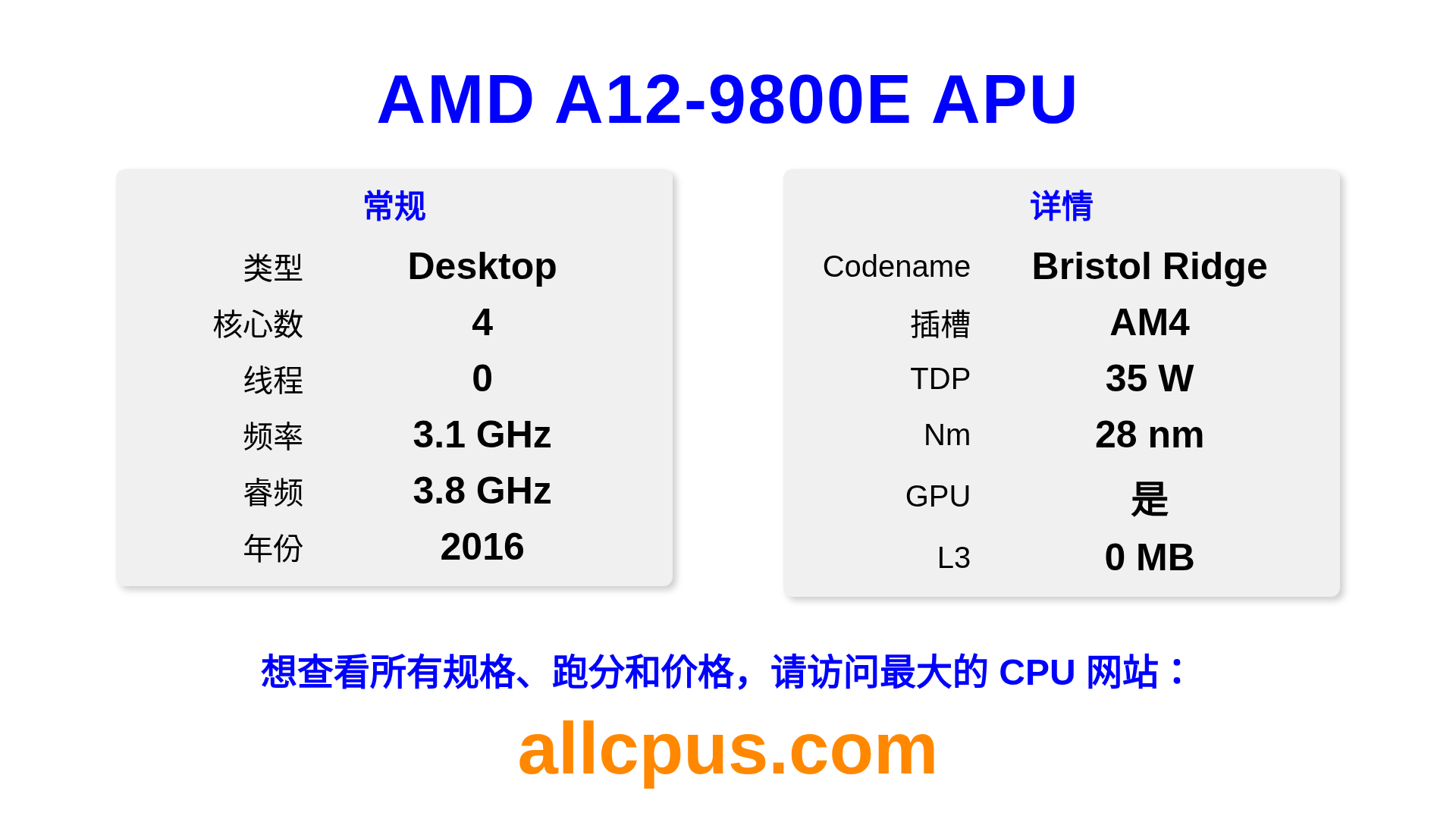 4C / 0T 3.1 / 3.8 GHz 2016 桌面 iGPU