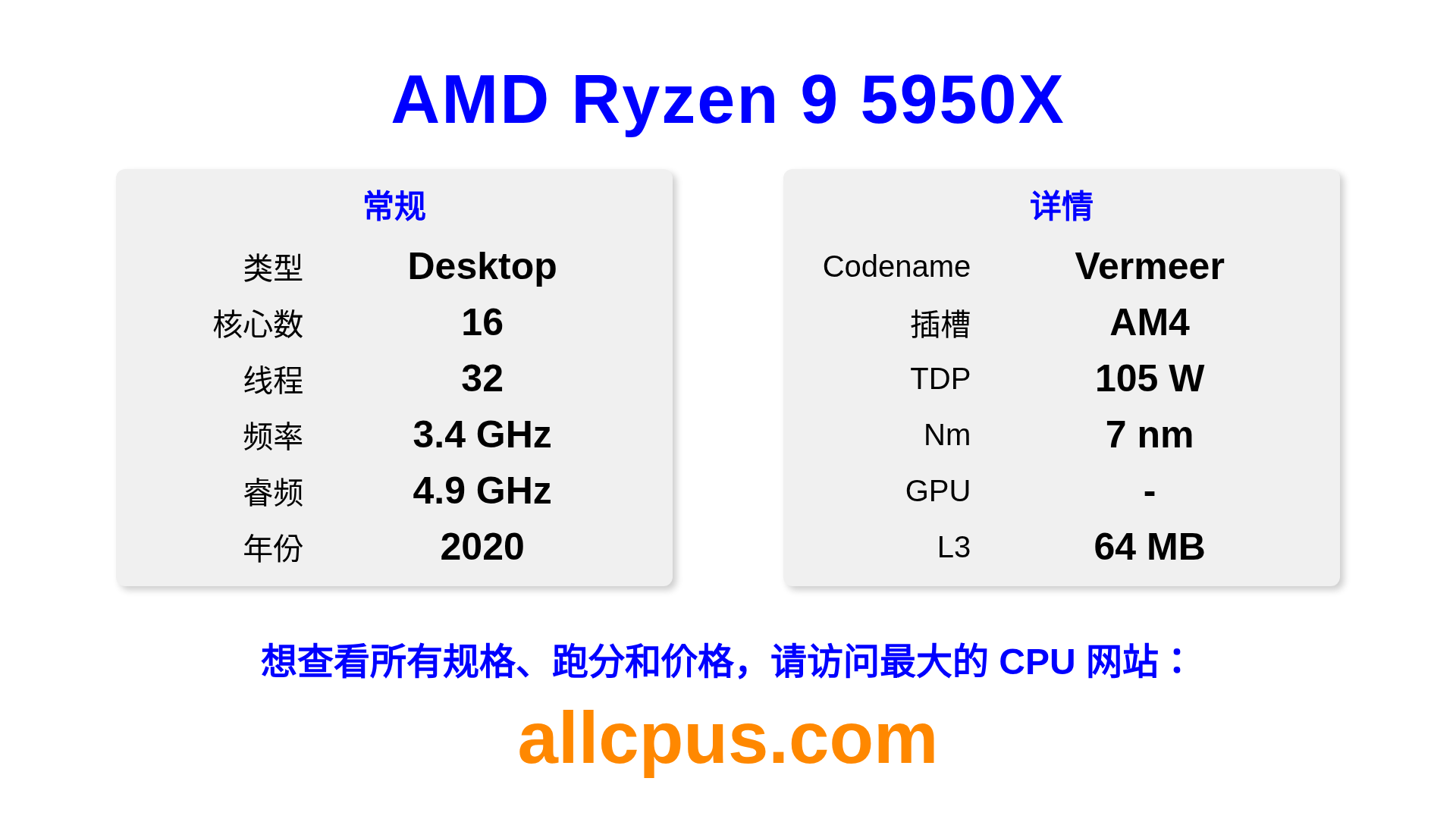 AMD Ryzen 9 5950X 是 AMD Ryzen 系列的 桌面处理器,基于 Vermeer 架构,于 2020 发布。 这款 CPU 拥有 16 核心,基础频率为 3400 MHz,最高加速频率为 4900 MHz,L3 缓存为 64 MB。 使用 7 nm 工艺制造。AMD Ryzen 9 5950X 设计用于 AM4 插槽。支持超频。 需要独立显卡。