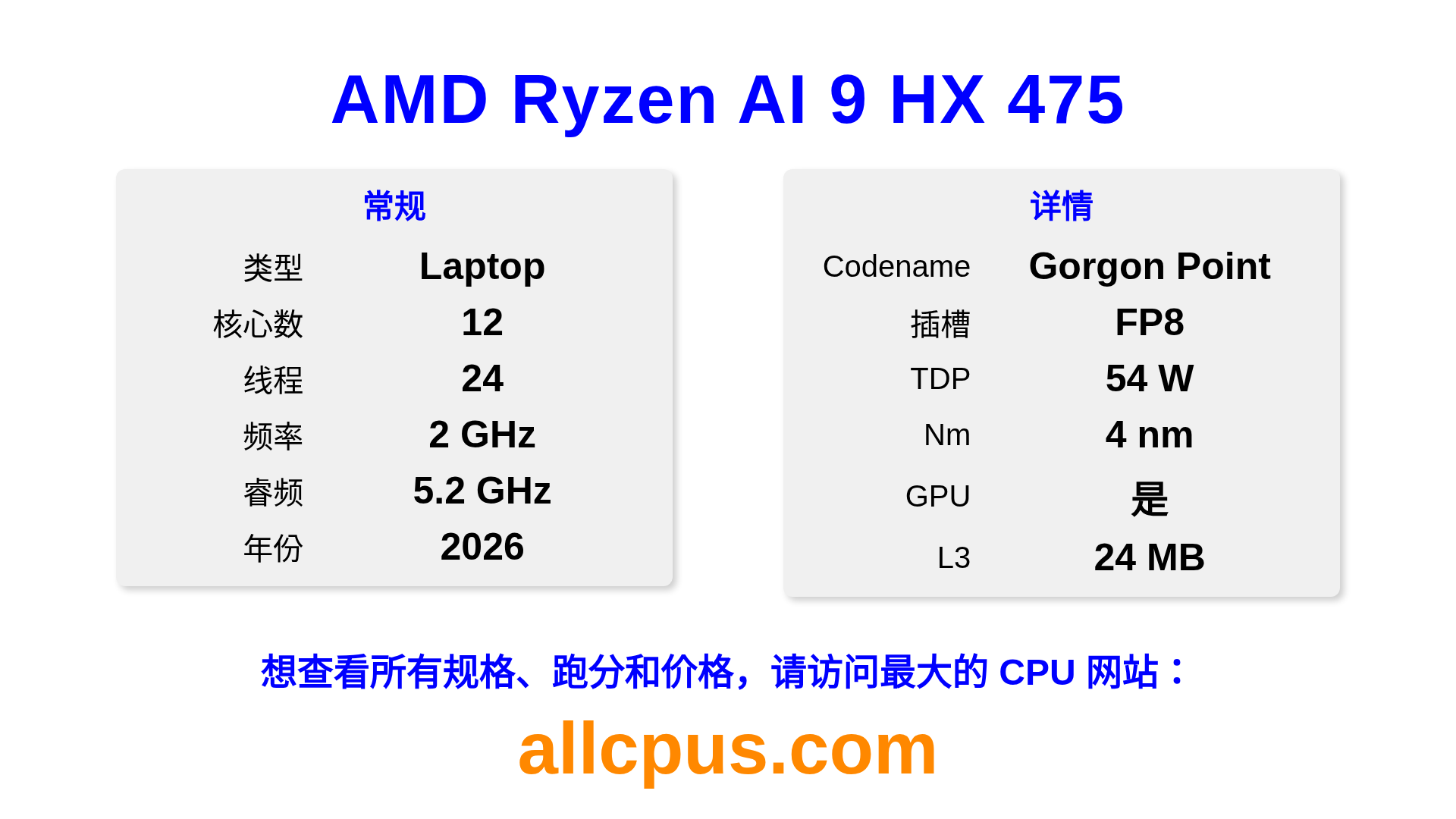 AMD Ryzen AI 9 HX 475 是 AMD Ryzen 系列的 笔记本处理器,基于 Gorgon Point 架构,于 2026 发布。 这款 CPU 拥有 12 核心,基础频率为 2000 MHz,最高加速频率为 5200 MHz,L3 缓存为 24 MB。 使用 4 nm 工艺制造。AMD Ryzen AI 9 HX 475 设计用于 FP8 插槽。支持超频。 包括集成的 AMD Radeon 890M 显卡。