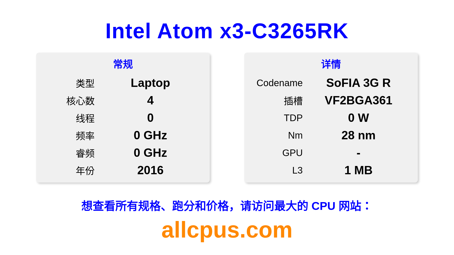 Intel Atom x3-C3265RK 是 Intel Intel Atom Processor Family 系列的 笔记本处理器,基于 SoFIA 3G R 架构,于 2016 发布。 这款 CPU 拥有 4 核心,基础频率为 0 MHz,最高加速频率为 0 MHz,L3 缓存为 1 MB。 使用 28 nm 工艺制造。Intel Atom x3-C3265RK 设计用于 VF2BGA361 插槽。支持超频。 需要独立显卡。