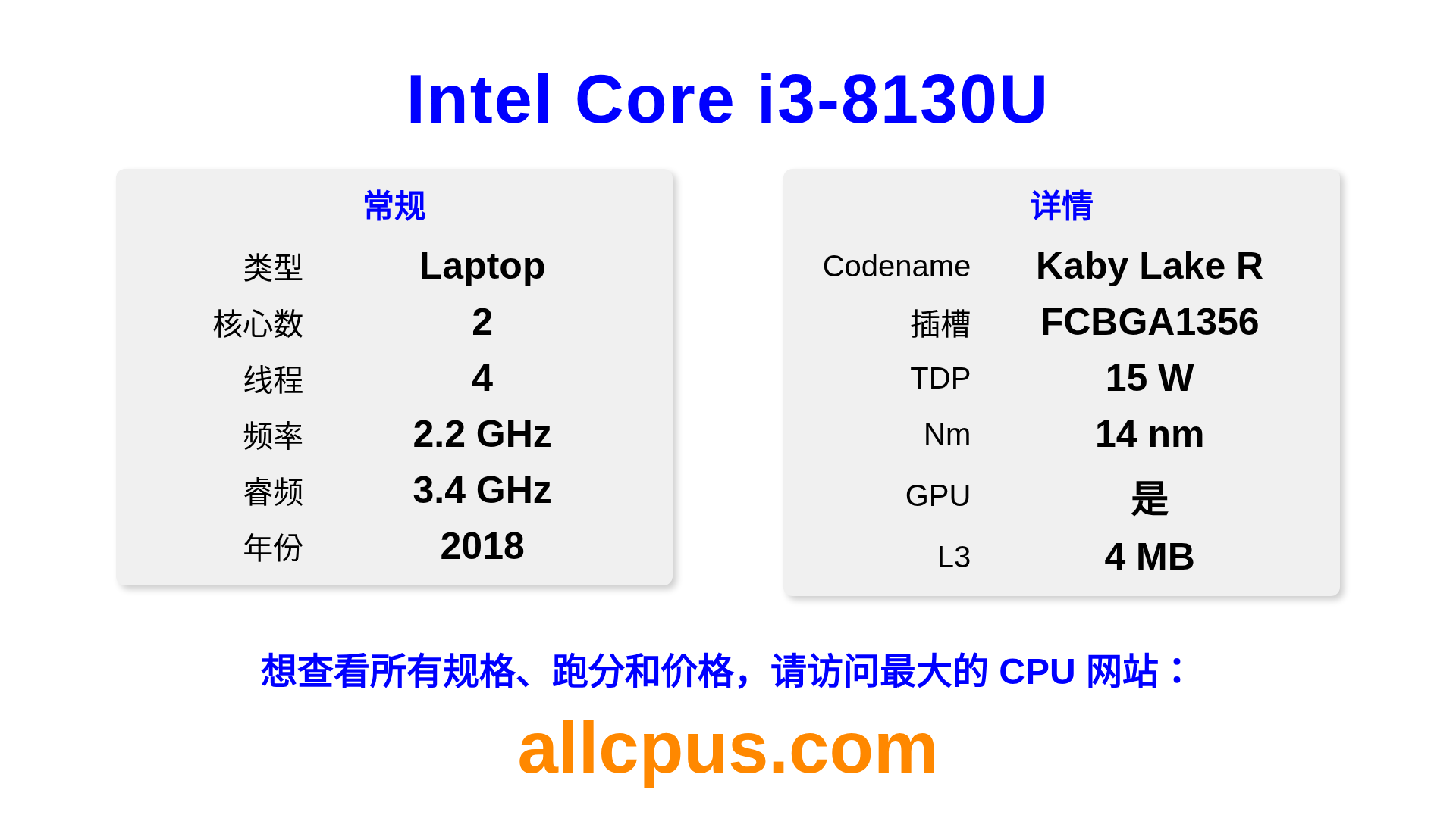 Intel Core i3-8130U is better than 7% cpus with score 17在此图表中,你可以看到该 CPU 适合哪些任务。分数为 Blender Benchmark Scores Blender 分数代表处理器在持续高负载下的多核性能,能很好地反映处理器的总体性能。。