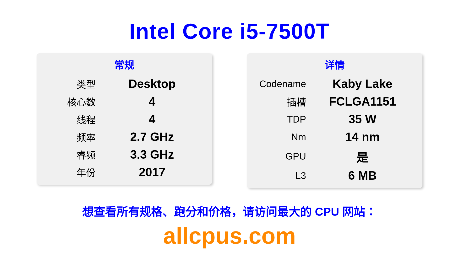 Intel Core i5-7500T is better than 21% cpus with score 38在此图表中,你可以看到该 CPU 适合哪些任务。分数为 Blender Benchmark Scores Blender 分数代表处理器在持续高负载下的多核性能,能很好地反映处理器的总体性能。。