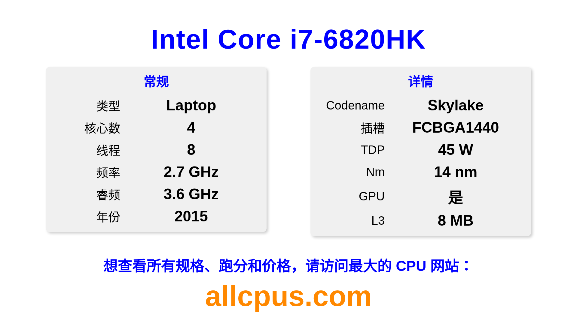 4C / 8T 2.7 / 3.6 GHz 2015 笔记本 iGPU