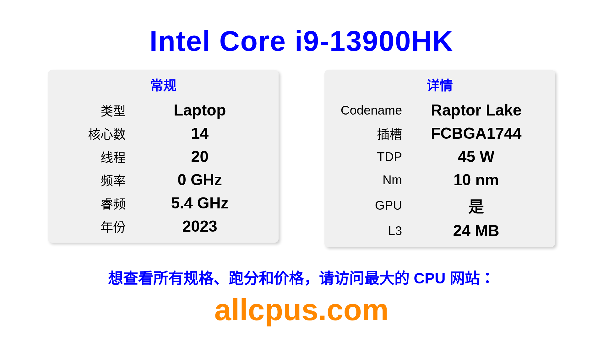 14C / 20T 0 / 5.4 GHz 2023 笔记本 iGPU