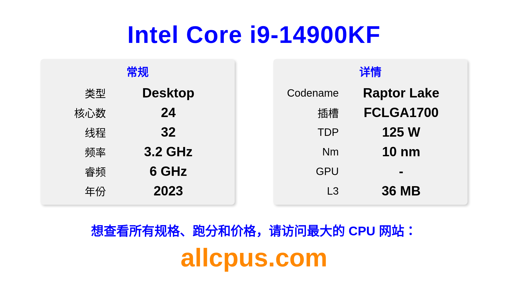 Intel Core i9-14900KF 是 Intel Intel Core 系列的 桌面处理器,基于 Raptor Lake 架构,于 2023 发布。 这款 CPU 拥有 24 核心,基础频率为 3200 MHz,最高加速频率为 6000 MHz,L3 缓存为 36 MB。 使用 10 nm 工艺制造。Intel Core i9-14900KF 设计用于 LGA1700 插槽。 需要独立显卡。