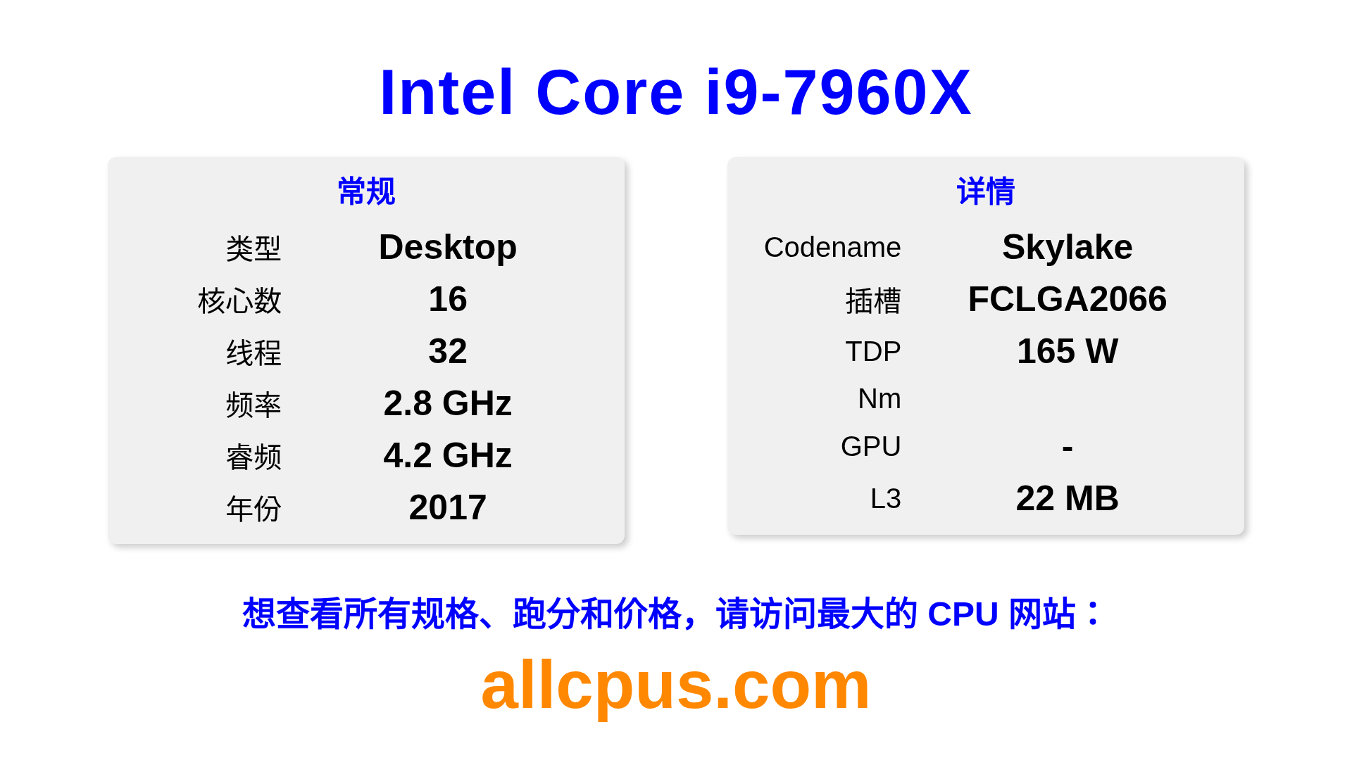16C / 32T 2.8 / 4.2 GHz 2017 桌面 no gpu